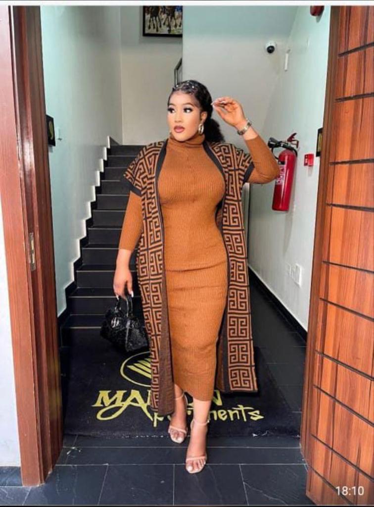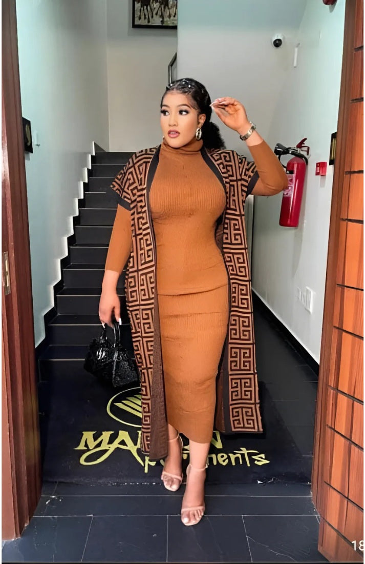 - Comes with a long patterned cardigan coat